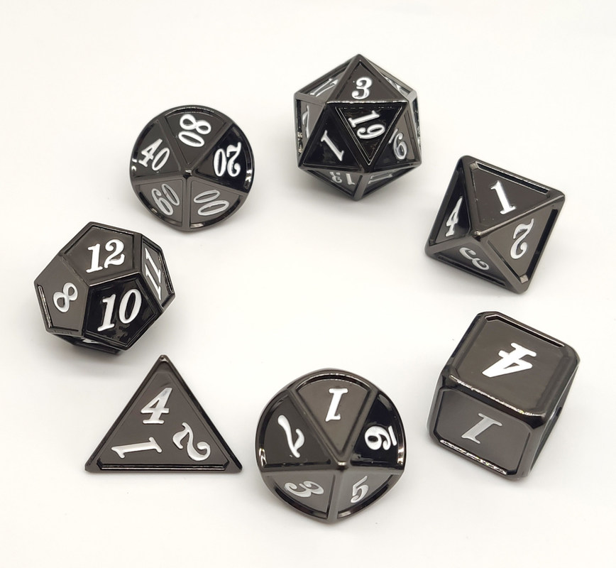Hand Carved Black Metal RPG Dice Sturdy For Dungeon And Dragon